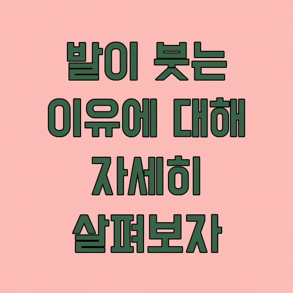 요즘 부쩍 발이 퉁퉁 붓는 느낌 때문에 신경 쓰이시는 분들 많으시죠? 저도 얼마 전까지만 해도 퇴근길이 어찌나 힘들던지요. 분명 하루 종일 의자에 앉아 있었는데도 발은 왜 이렇게 무겁고 붓는 건지 말이에요! 😥 오늘은 저와 함께 발이 붓는 다양한 이유 들을 쉽고 재미있게 알아보고, 혹시 내 이야기는 아닌지 점검해보는 시간을 가져볼게요.