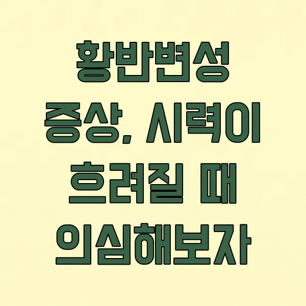 최근 들어 눈이 침침하고 글씨가 흐릿하게 보이는 경우가 잦아졌나요? 단순한 피로라고 생각하기 쉽지만, 혹시 '황반변성'은 아닐까 의심해 볼 때입니다. 시력 저하의 대표적인 원인 중 하나인 황반변성은 조기에 발견하고 관리하는 것이 정말 중요하답니다.